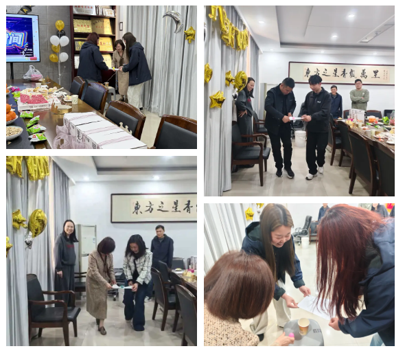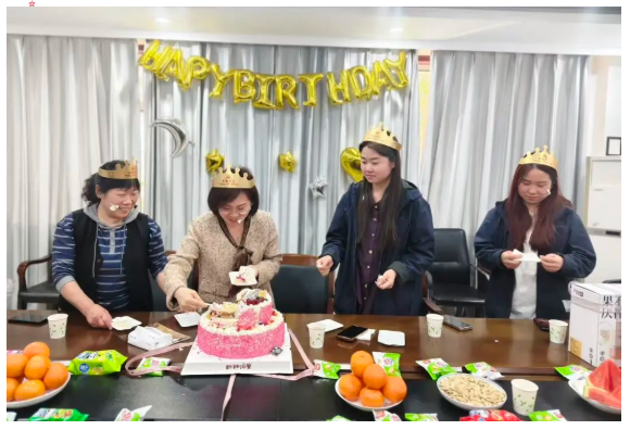 生日会现场被精心装扮一新,五彩的气球、温馨的灯光、香甜的蛋糕与暖心的礼物一一就位,处处洋溢着欢快、温馨的氛围。细微之处藏着公司对每一位员工的关怀,让大家在忙碌的工作之余,瞬间被集体的温暖与宠爱包围,满心都是期待与欢喜。